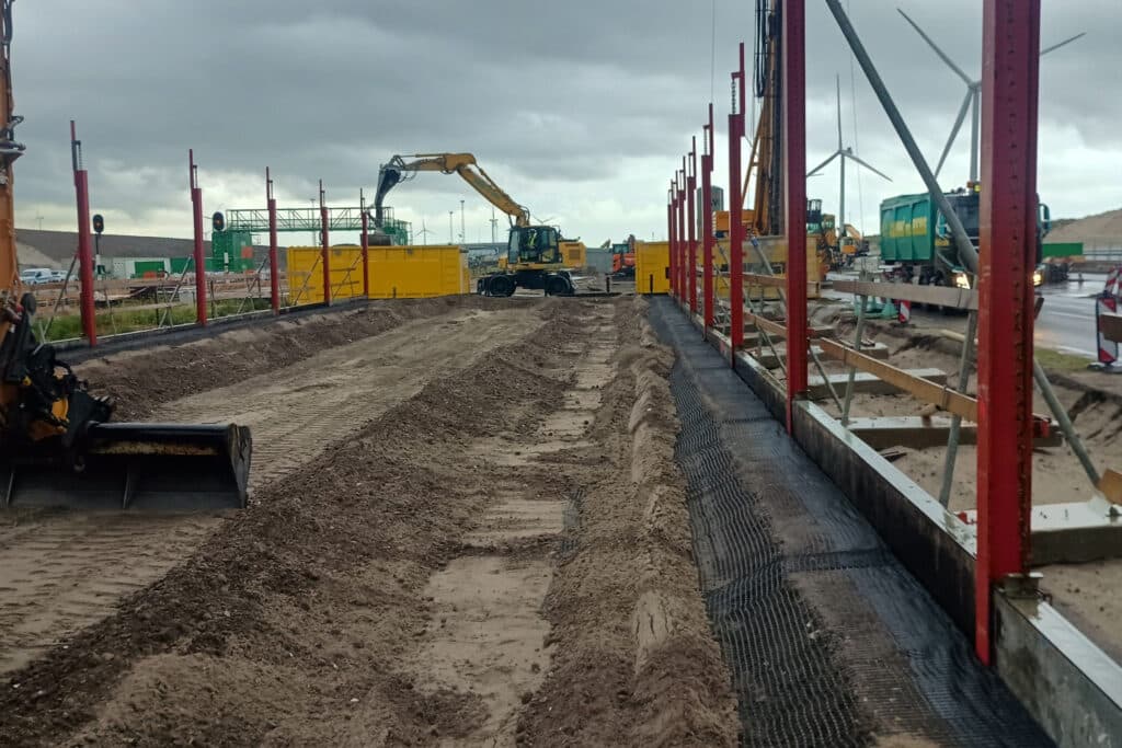 De gewapende grondconstructies worden gerealiseerd met een modern en goed onderhouden machinepark. We zijn continu op zoek naar innovaties en middelen die onze werkzaamheden op kwalitatief en ergonomisch gebied optimaliseren.